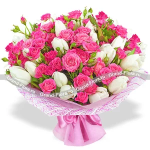 Для моей принцессы - букет из белых и розовых тюльпанов