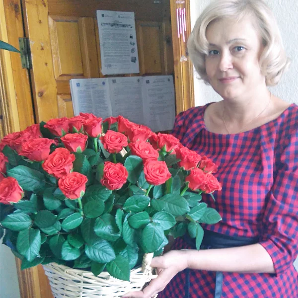 К юбилею мамы доставили 101 розу в корзине. Шикарно, спасибо флористам!
