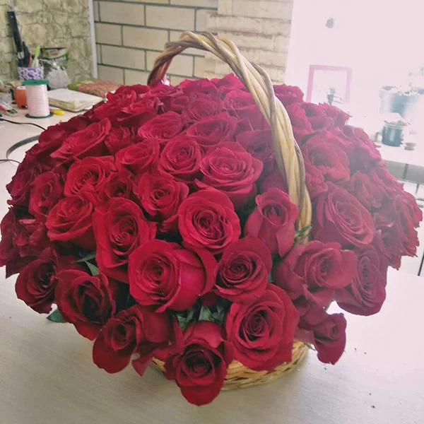 Я заказывала эту корзину красных роз с доставкой на дом. привезли вовремя, очень удобно что оплатила все картой на сайте заранее, и все привезли к точному времени! Супер!