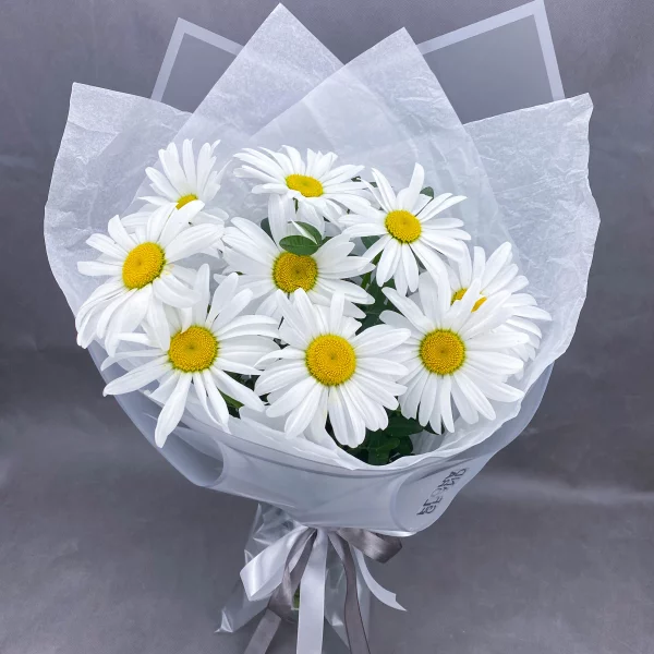 Простое счастье - букет из ромашек в стильной упаковке